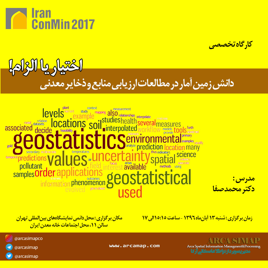 شرکت آرکا در روز اول این نمایشگاه اقدام به برگزاری کارگاه تخصصی با موضوع دانش زمین‌آمار در مطالعات ارزیابی منابع و ذخایر معدنی، اختیار یا الزام” با ارائه آقای دکتر محمد صفا، از ساعت ۱۵:۳۰ در محل سالن ۱۱، محل اجتماعات خانه معدن ایران نموده است. در این کارگاه لزوم توجه به مباحث زمین آماری در مطالعات تخمین ذخیره مورد بحث قرار خواهد گرفت.