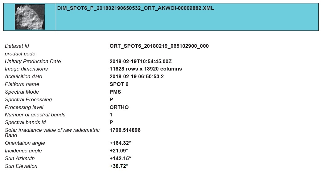 جدول زیر مشخصات تصویر تهیه شده را نشان می‌دهد: